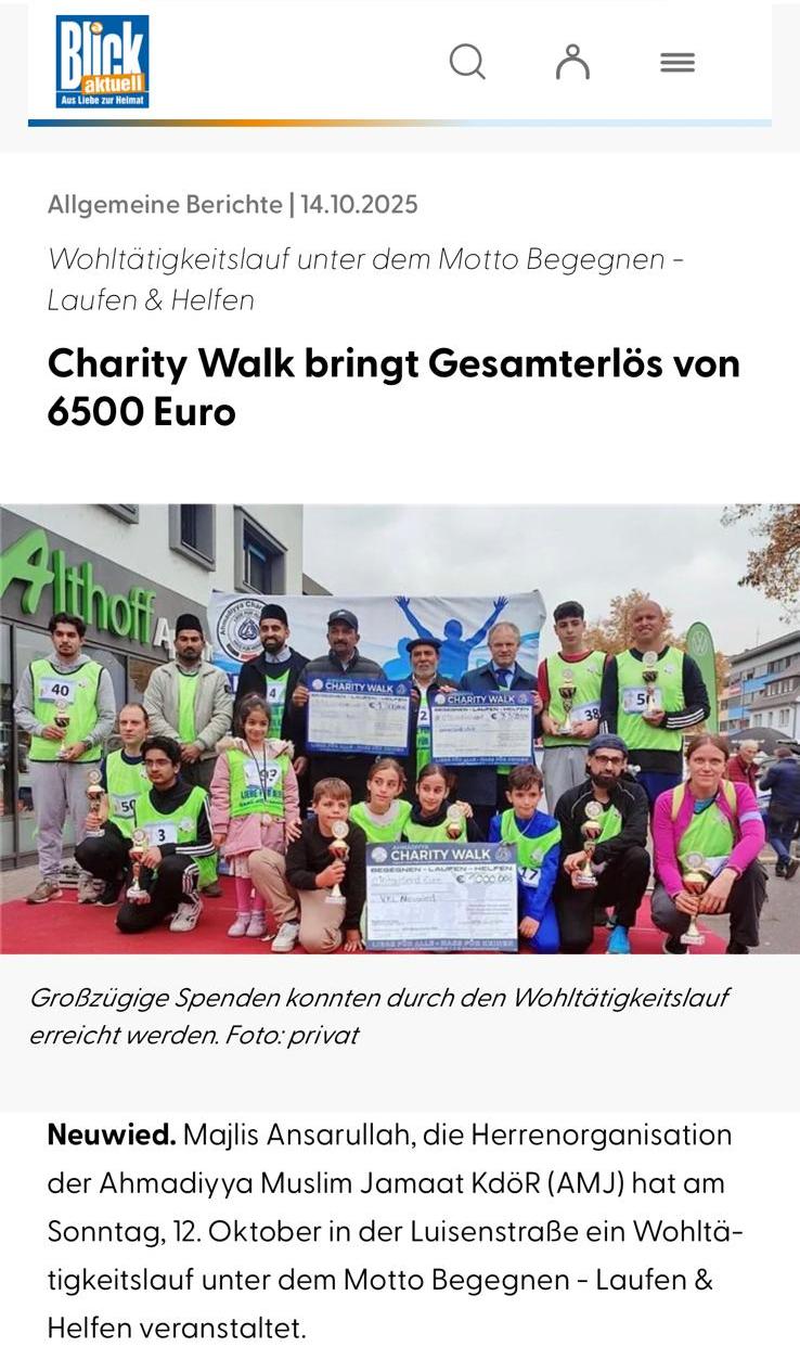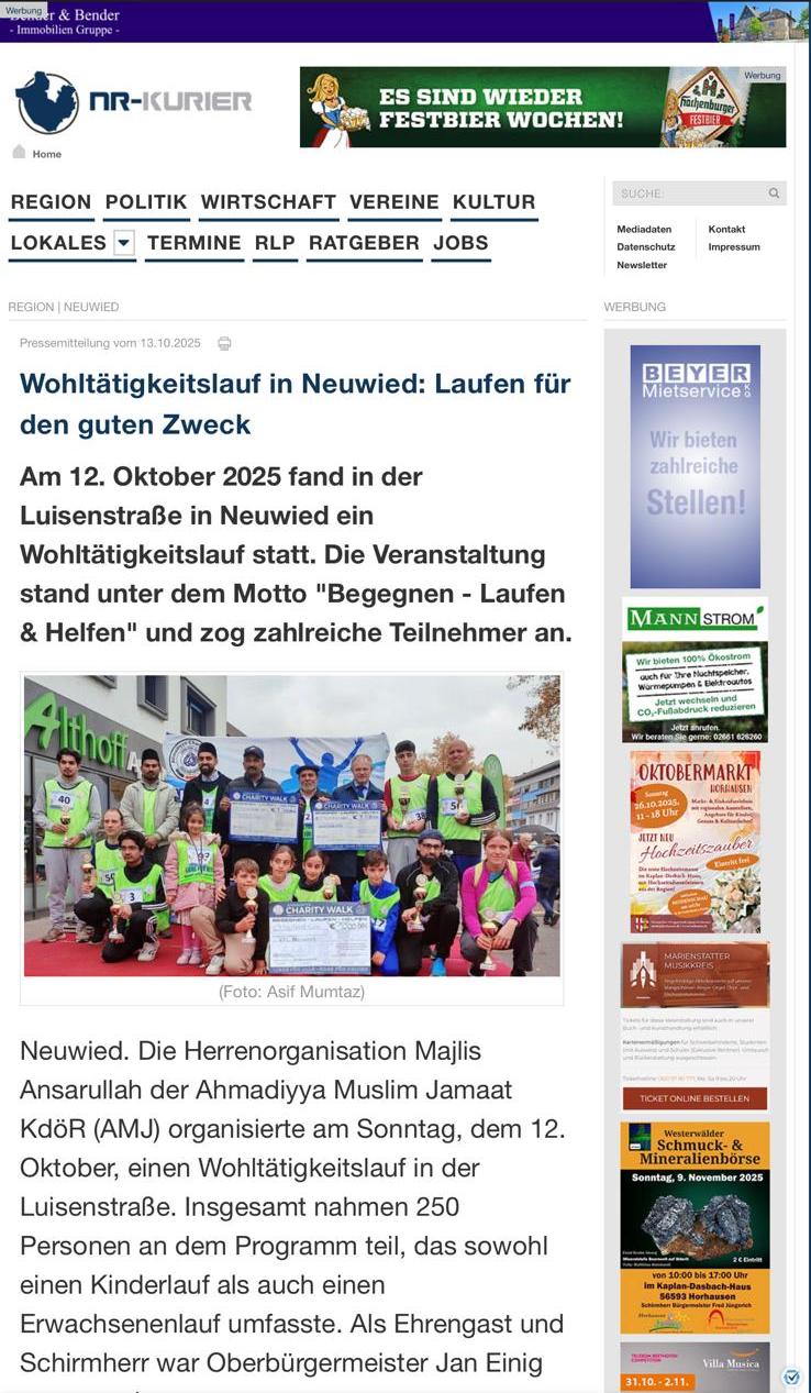 Seit vielen Jahren trägt die Ahmadiyya Muslim Jamaat Gemeinde mit dieser Benefizveranstaltung dazu bei, das gesellschaftliche Miteinander unserer Stadt zu stärken. Der Lauf verbindet sportliche Aktivität mit einem wichtigen sozialen Anliegen – dem Engagement für Kinder und gemeinnützige Einrichtungen hier in Neuwied.